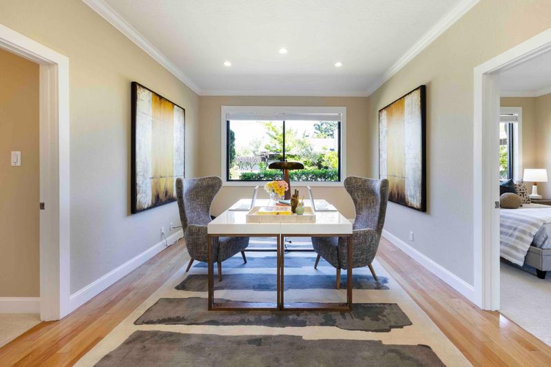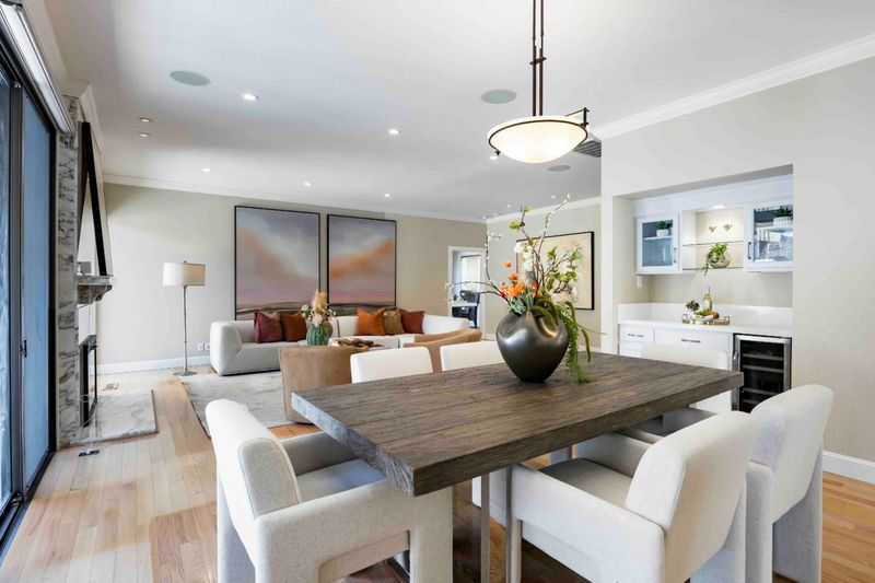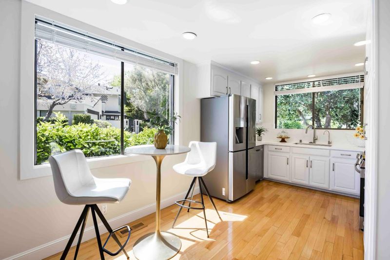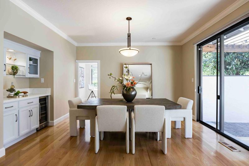 Bright and beautifully updated, this stylish home in the Sharon Oaks community blends comfort, style, and convenience. Spanning more than 2,200 sf across two levels, the home features hardwood floors, crown molding, high ceilings, and an abundance of natural light. The living room centers around a fireplace, while a dining room with a wine refrigerator flows into a kitchen with quartz countertops and a breakfast nook, alongside a sun-filled den. Three bedroom suites provide exceptional comfort and flexibility. Outdoors, a pergola-covered patio creates a wonderful setting for relaxation or entertaining, complemented by community amenities including a pool and clubhouse. Additional highlights include air conditioning and a 2-car garage with an epoxy floor. All of this is just moments from the Sharon Heights Shopping Center, with easy access to downtown Menlo Park and Palo Alto, Stanford University, Interstate 280, and top-ranked Las Lomitas schools (buyer to verify eligibility).