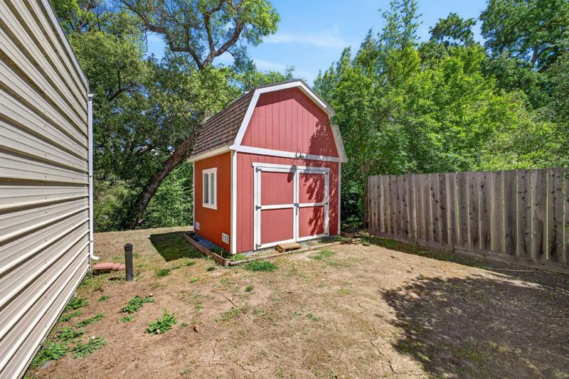 Country Living in New Almaden on almost 1/2 an acre, Large steel frame building/Warehouse 1,200 sq. ft. +/- is used as Garage or? Located next to San Vicente Open Space preserve. Home is 1,205 sq ft; attached Bonus Room 200 sq ft not in sq. footage.