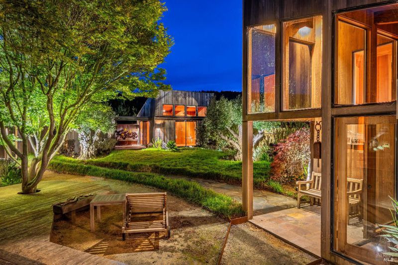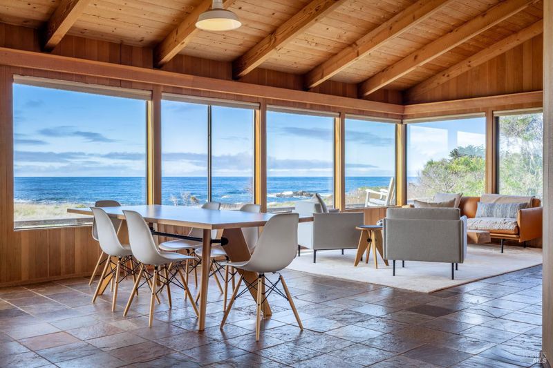 Designed by acclaimed architect William Turnbull FAIA, this oceanfront compound reflects a legacy of design excellence with roots in the award-winning architectural tradition that defines The Sea Ranch. Set dramatically above Shell Beach, this residence offers a rare blend of classic architecture with design integrity, unparalleled privacy, beach access, and panoramic coastline ocean views. Clean lines and natural materials echo the surrounding landscape. Every angle invites a deeper connection to the elements as this architecturally significant home is both powerful and understated - a study in form, material, and place. Originally built in 1983 and thoughtfully expanded in 1994 under Turnbull's direction, the main residence is centered around a stunning great room with uninterrupted whitewater views. Here, walls of glass frame the dramatic rock outcroppings and crashing waves of Shell Beach, while interior finishes include vertical grain fir cabinetry, granite countertops, slate flooring, and a propane fireplace. The space opens seamlessly to ocean-facing decks as well as a private, sheltered courtyard. Two primary bedroom suites anchor opposite ends of the home, while a third bedroom or office sits just off the grand two-story solarium. Bathed in sunlight, this striking space features passive solar heating and a Rumford fireplace, with tranquil views into the beautifully landscaped courtyard. Crossing the enclosed courtyard graced by a pair of century-old olive trees you'll find a charming detached guest studio (fourth bedroom) complete with a full bath and private sunlit deck, offering a serene retreat for visitors. Additional features include a two-car garage with epoxy floors, storage sheds, decomposed granite pathways, four-bedroom septic system, 3 tankless water heaters, radiant floor heating, underground utilities, and fiber optic internet. Included in the sale are remodel plans from Malcolm Davis Architecture (which have received conceptual design approval and provide the vision to bring this statement property to its full potential). For the buyer, who has been waiting for something truly distinctive, not just another coastal home, but a legacy property, 336 Pipers Reach presents a rare opportunity to steward a piece of architectural history and create something remarkable in one of Northern California's most iconic settings. This is The Sea Ranch at its most compelling. Unpolished. Authentic. Full of possibilities.