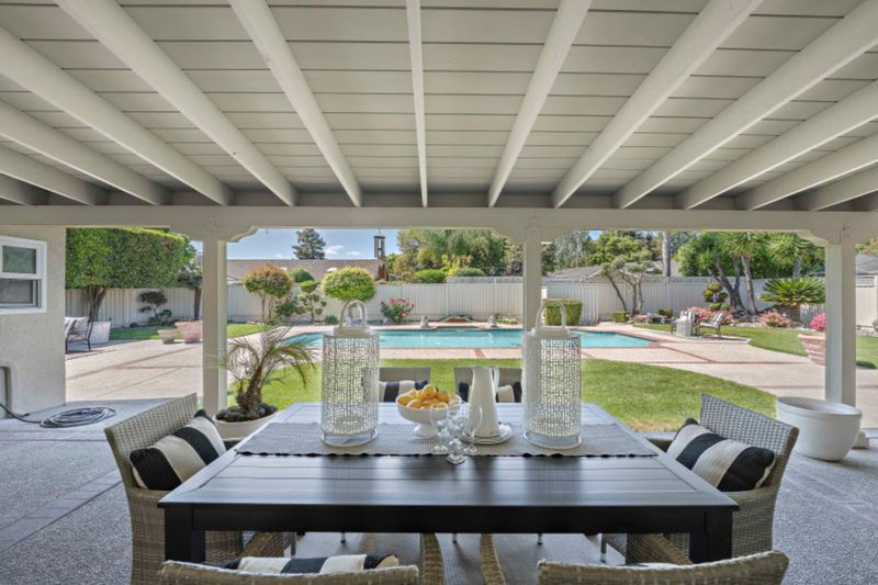 Beautiful single-level home with 3 bedrooms + den / bonus room set on an expansive, flat aapx 12,700 sq. ft landscaped lot. The impressive grounds showcase a resort-style setting, featuring a sparkling pool with an inviting hot tub, a covered patio, and multiple thoughtfully designed spaces ideal for both relaxing and entertaining. Inside, a light-filled contemporary interior offers an exceptional and functional floor plan. Sliding glass doors from both the family room and the spacious primary suite create seamless indoor-outdoor living, opening to a generous patio perfect for dining and everyday enjoyment. A refined blend of formal and informal living spaces includes an elegant formal entry, a separate living room, and a formal dining area, all complemented by a well-appointed kitchen that flows effortlessly into the great room, ideal for modern living and entertaining.The serene primary suite features a beautifully appointed en suite bathroom and a spacious walk-in closet, providing a private retreat. Ideally located just moments from vibrant downtown Willow Glen this move-in-ready home offers an exceptional combination of comfort, style, and premier outdoor living!