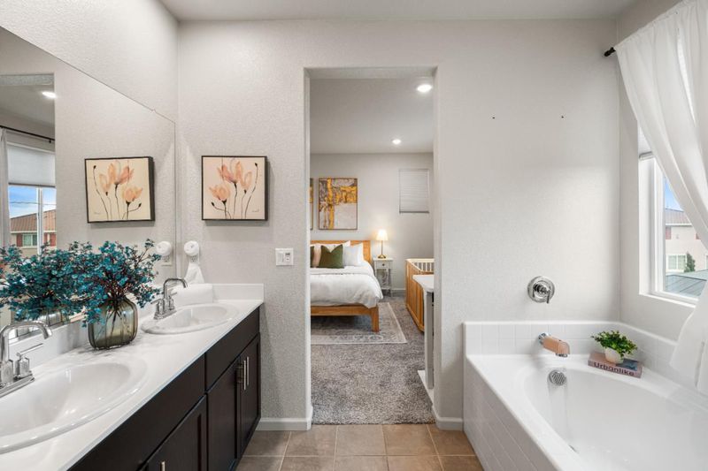 Welcome to this move-in-ready east-facing home in the gated Vines community in Oakley, featuring owned solar and modern upgrades throughout. Built in 2021 by Meritage Homes, this bright open-concept layout offers a spacious living area with vinyl plank flooring downstairs, upgraded recessed lighting throughout, and a sleek kitchen with granite countertops, stainless steel appliances, and a large island. A main-level bedroom and full bath provide flexibility for guests or multigenerational living. Upstairs features a spacious primary suite with dual vanities, soaking tub, and walk-in closet, along with two additional bedrooms, a loft, and a laundry room. Enjoy one of the largest lots in the community with a fully finished backyard, custom stone patio, mature passion fruit tree, and beautiful sunset views - perfect for relaxing or entertaining in a comfortably shaded outdoor space. Additional features include a Tesla charger, smart thermostat, and smart garage opener. Conveniently located with easy access to Highway 4, and minutes from Costco, Trader Joes, Safeway, The Streets of Brentwood, Big Break Regional Shoreline, Contra Costa wine country, farmers markets, and downtown Oakley.