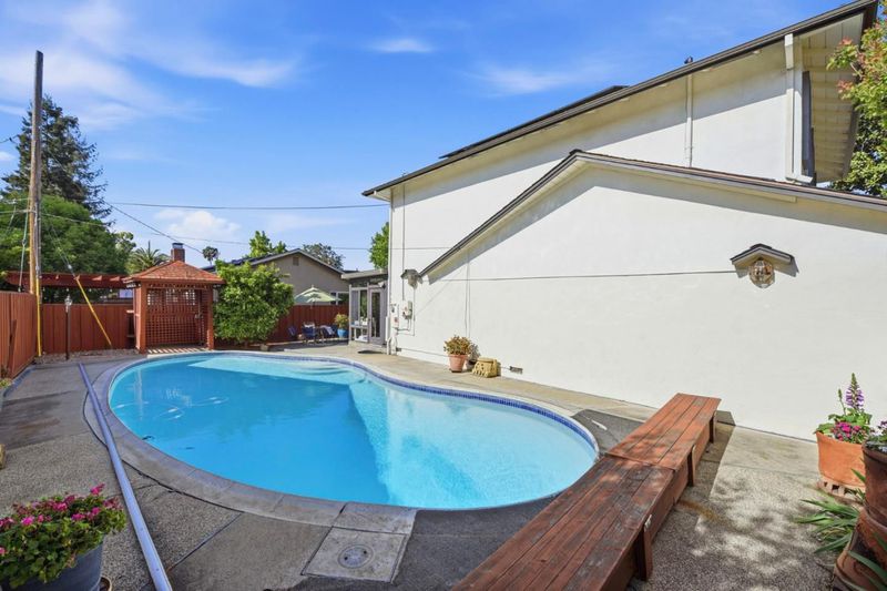 Fresh paint inside and out, new lighting, refinished hardwood floors and new carpet. Inviting pool for the warm California seasons and a sunroom to relax with morning coffee or entertaining. The large kitchen offers a double oven, pantry, space for dining, a desk and a breakfast bar. There is a wood burning fireplace in the spacious living room as well as central A/C (installed in 2022) and solar to keep energy bills low. The primary ensuite bedroom is situated in the back of the house and has a spacious walk- in closet and hardwood floors. This home lives larger than 1,676sf. with multiple living areas and space to create a downstairs bedroom and bathroom. There is even a sauna in the garage! Close to schools, parks, shopping and freeways.