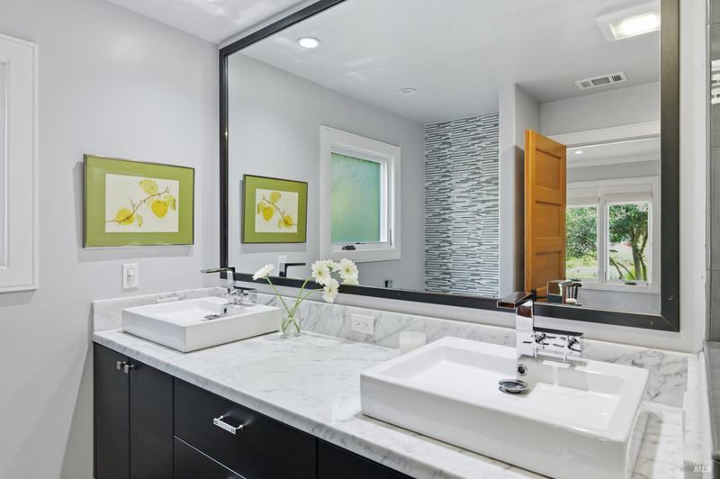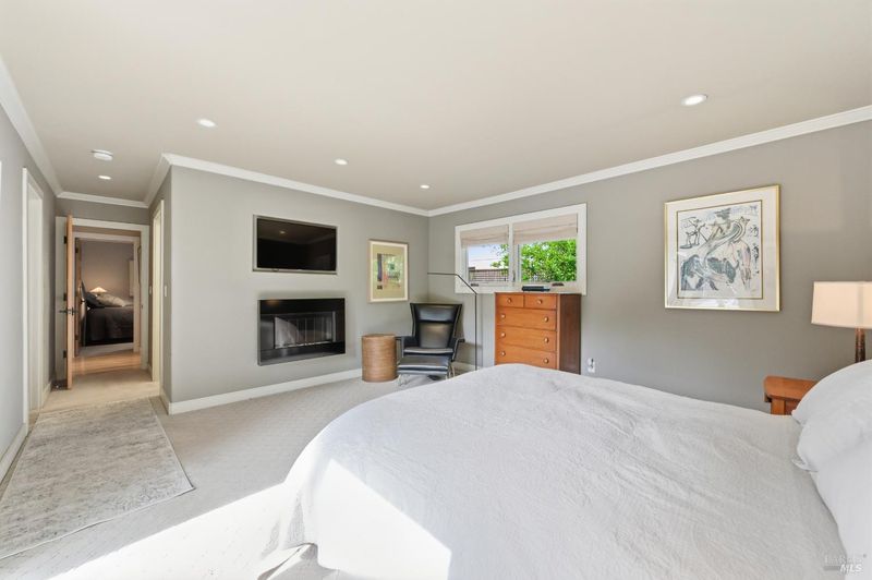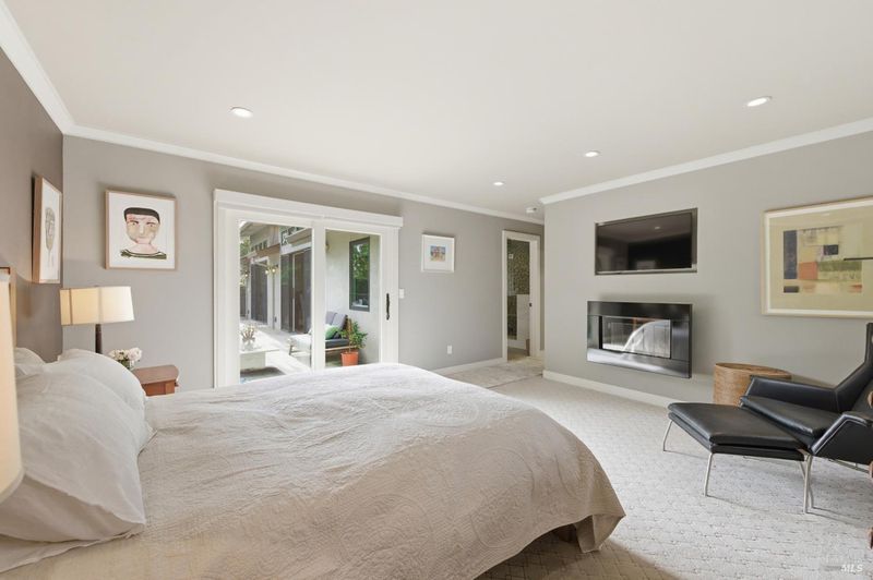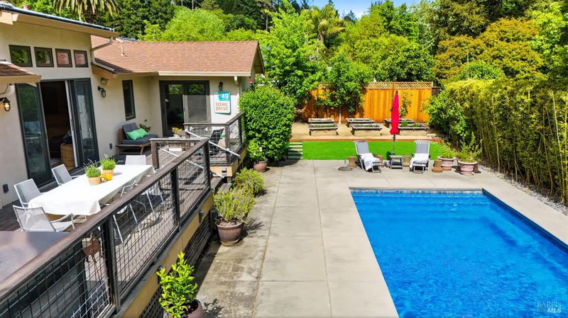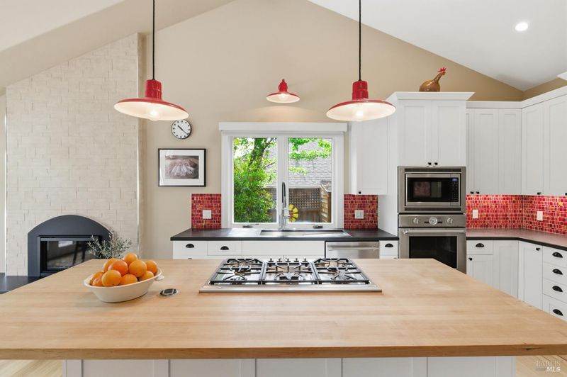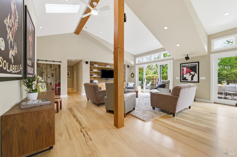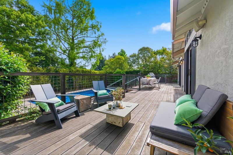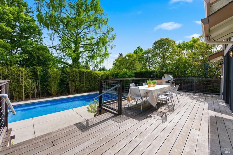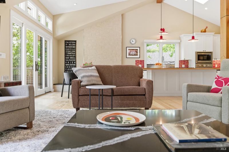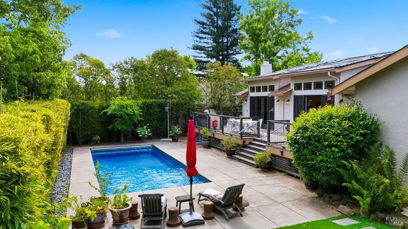 This light-filled, beautifully updated 2-bedroom, 2.5-bath home features soaring ceilings and an open-concept living and dining area anchored by a modern gas fireplace. The main living space opens seamlessly to an expansive deck and a solar heated pool, offering exceptional indoor-outdoor living. The chef's kitchen is appointed with premium finishes and high-end appliances, perfect for both everyday living and entertaining. A thoughtfully designed floor plan includes a luxurious primary suite with a walk-in closet and its own fireplace. The spa-inspired primary bath features a steam shower, dual vanities, and a soaking tub. The second bedroom offers a private en suite bath, while a versatile den provides an ideal space for a guest room or home office. A stylish half bath is conveniently located for guests. Additional amenities include a spacious laundry room and an attached two-car garage with generous storage. The private backyard is a true retreat, complete with a solar-heated pool and automatic cover, an expansive deck with a built-in Viking BBQ, raised garden beds, and mature fruit trees, perfect for relaxing or entertaining. Ideally located in the heart of Napa Valley, just moments from world-class wineries, dining, and shopping, this exceptional property offers the best of wine country living with comfort, style, and privacy.