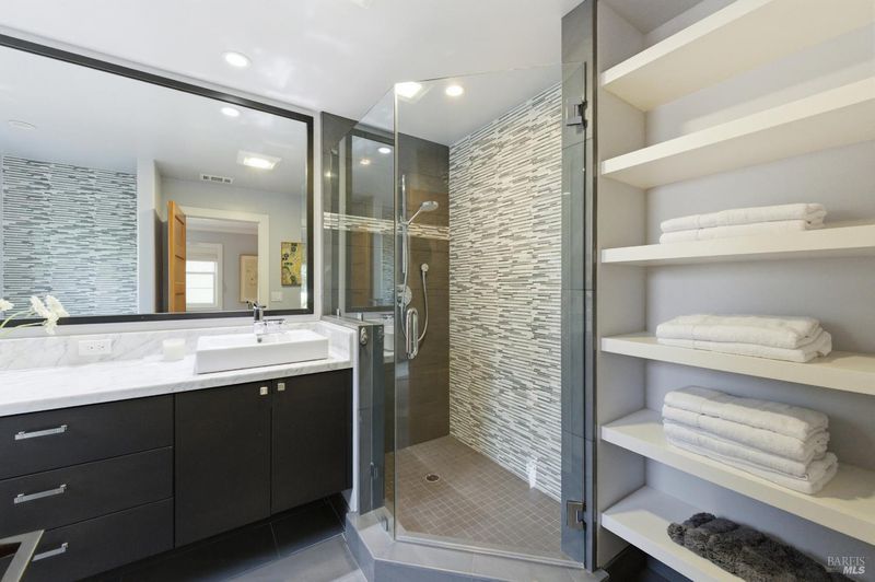 Double Sinks, Shower Stall(s), Soaking Tub, Steam