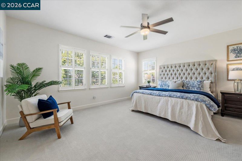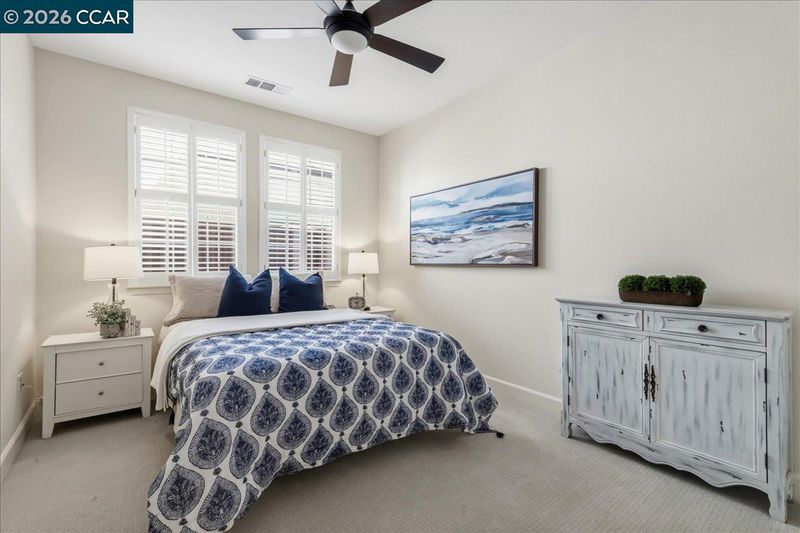 Tucked at the end of a quiet court in the sought-after Windemere neighborhood of San Ramon, 211 Cullens Court offers 3,757± sq ft of beautifully updated living space. This 5-bedroom, 4-bath home includes a main-level bedroom and full bath - ideal for family, guests or a private office. Impeccably maintained and updated with fresh interior paint and new carpet (2022). The kitchen features modern stainless-steel appliances: a new built-in KitchenAid refrigerator (2025), KitchenAid Double Oven, 6-Burner Wolf gas stove with WIFI-enabled range hood (2024) and Bosch Dishwasher. This is complemented by smart upgrades including a NEST thermostat, Ring security system with glass break sensors, and WIFI-enabled sprinkler control (2023). Two new dual-zone HVAC systems (2024) and a water softener enhance comfort and efficiency. The backyard is designed for relaxation and gathering with a gas fire pit and mature fruit trees including lemon, apricot, and pomegranate. Additional highlights include a 3-car garage with two new WIFI-enabled openers, electrical outlets behind each toilet, and new front metal door (2022). Located near top-rated SRVUSD schools, parks, shopping, and commuter routes - this is Windemere living at its finest.