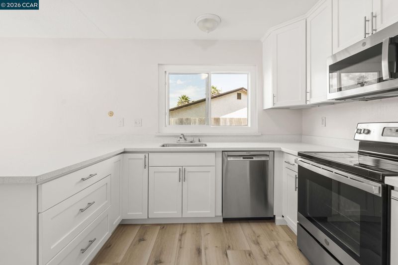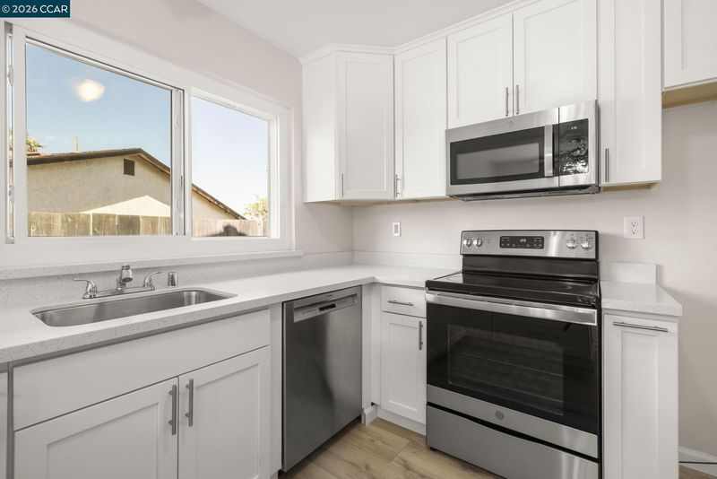- Dishwasher, Electric Range, Microwave, Dryer, Washer, Gas Water Heater, Counter - Solid Surface, Eat-in Kitchen, Electric Range/Cooktop, Disposal
