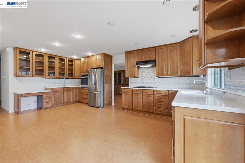 Spacious 4 bed, 2.5 bath home on an approx. 11,000 sq ft lot in a desirable location near Proctor School, Aitkin Senior Center, golf course, Ewing and Proctor parks, Lake Chabot, and regional trails. Over 2,000 sq ft of living space featuring a large kitchen with abundant cabinetry and room for a full-size table, oversized formal dining room with built-ins ideal for large gatherings, and generous living and family areas with fireplace. Recently updated with remodeled kitchen and baths, new laminate flooring (2024), and newer furnace (2022). Solid surface countertops throughout. Bbrick and redwood deck with raised planter beds and covered patio creates an ideal outdoor entertaining space. Private backyard with mature landscaping and colorful flower beds. Excellent functionality with a rare dual garage setup including an attached garage with laundry area, cabinets, and workbench, plus a detached 2+ car garage with remote doors. Long driveway and two separate driveways provide abundant parking. Detached garage maybe an opportunity for a ADU. Private setting on a large lot, flexible living space, and convenient access to parks, schools, and recreation.