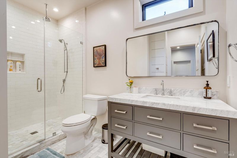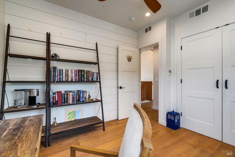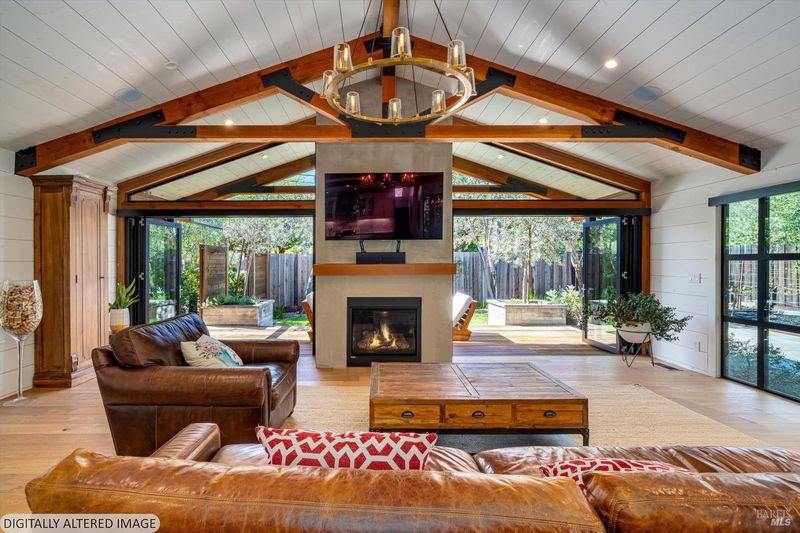 Located on the desirable west side just moments from downtown St. Helena, this 4-bedroom, 3-bathroom modern style farmhouse offers 2,400 sq. ft. of thoughtfully curated living space. Soaring cathedral ceilings with wood beams and custom shiplap detailing on walls and ceilings create a warm yet sophisticated aesthetic throughout. The open-concept floor plan seamlessly connects the living room, dining area, and kitchen ideal for both everyday living and entertaining. A stunning oversized island with Carrara marble countertops anchors the kitchen, complemented by French oak hardwood floors and abundant natural light. A temperature controlled 200 bottle wine cellar is highlighted through custom glass and vintage racking system. Expansive La Cantina bi-fold doors open to an inviting outdoor living space featuring a fully equipped outdoor cooking area and a striking Montigo fireplace with wood mantle, creating the perfect indoor-outdoor lifestyle. Additional details include a cozy indoor fireplace, spa-inspired bathrooms with walk-in showers, owned solar system, Nest-controlled climate system, and a durable standing seam metal roof. A rare opportunity to enjoy absolute comfort and elevated design in a prime in-town location.