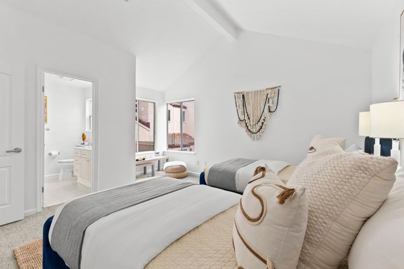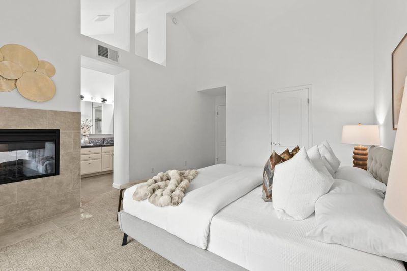 Luxurious penthouse condo in Corte Bella, Westside San Mateo. This expansive 1,507 sq ft, two-level townhome-style home offers 2 bedrooms, 2.5 bathrooms and a versatile BONUS ROOM ideal as a 3RD BEDROOM, office or formal dining room. Updated with luxury vinyl plank flooring, new carpeting, recessed lighting, and modern fixtures throughout. Living room features a vaulted ceiling, fireplace, and private balcony overlooking the landscaped courtyard. Bonus room off the main living area with double doors. Kitchen includes newer stainless steel appliances and under-cabinet LED lighting. Upstairs bedrooms offer private ensuite baths. Primary suite includes vaulted ceiling, walk-in closet, private balcony, and double-sided fireplace. Primary bath features dual-sink quartz vanity, mirrored cabinet, sunken tub, and separate shower. Secondary bedroom includes vaulted ceiling, walk-in closet, and private bath. Laundry area with side-by-side washer/dryer. Includes new central A/C and heating, two secured parking spaces, and extra storage. Gated community with pool, spa, fitness center, and clubhouse. Close to 25th Ave, downtown San Mateo, Hillsdale Shopping Center, CalTrain, public transportation and Hwy 92/101/280.