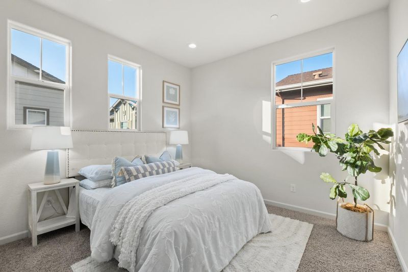 *Bright, contemporary living meets a thoughtfully upgraded interior in this stylish home nestled within the desirable Pepper Lane community. *Open-concept living, dining, and kitchen areas flow seamlessly for daily living and entertaining. The kitchen features granite countertops, gas cooktop, pantry storage, and a breakfast bar. *Quality builder upgrades include updated main-floor flooring, tile in key areas, and upgraded carpeting in bedrooms and stairs. Both bedrooms have custom closet cabinetry, and the primary suite offers a well-appointed en-suite with dual sinks and refined finishes. *Additional features: in-house laundry, central heating & A/C, double-pane windows, ceiling insulation, thermostat controller, and whole-house water softener. *Attached garage with custom storage cabinetry and a 110V 20-amp outlet supports storage and future EV needs. *Set within a well-maintained community, residents enjoy landscaped greenbelts, a clubhouse, playgrounds, BBQ areas, and outdoor gathering spaces. Conveniently located near parks, amenities, and top tech employers (Nvidia, Google, Apple, Supermicro), within the boundaries of Vinci Park Elementary (9/10), Piedmont Middle (8/10), and Independence High (8/10) per GreatSchools.