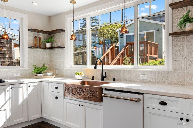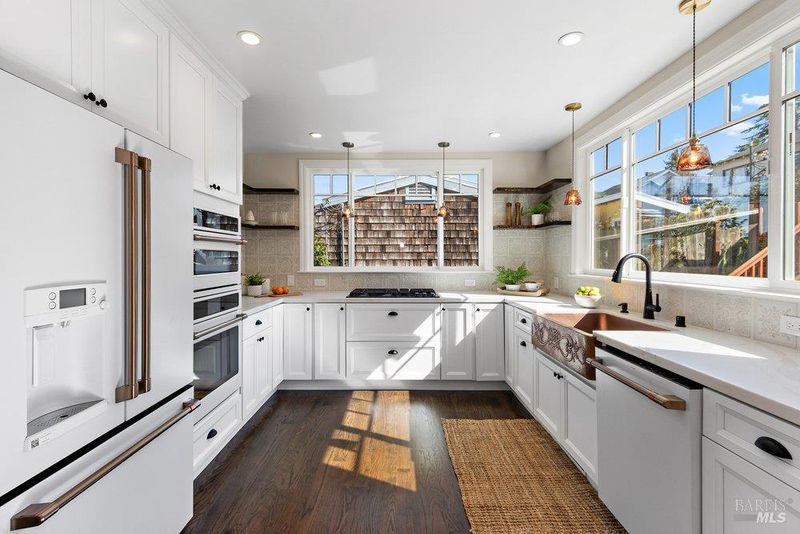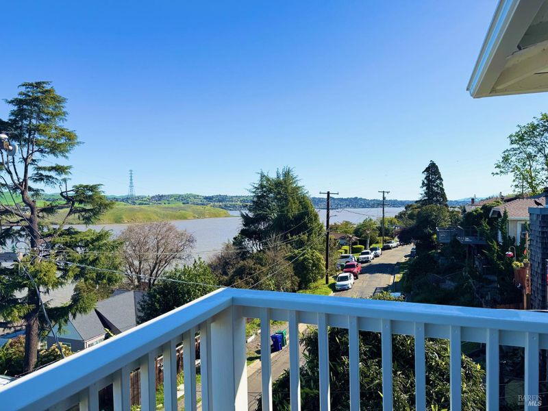 Gorgeous Panoramic Waterview beauty! Extensive renovation from top to bottom. Sophisticated style throughout. Roof and windows replaced. 3 1/2 bathrooms. Complete kitchen upgrade with appliances, quartz counters, and large copper farmhouse sink. Beautiful wood, laminate, and tile flooring. New central heating and AC. Master bedroom with French doors to a deck for enjoying the view, and a fabulous master bath with a large tub and shower enclosure. Washer and dryer included. The lower level, with a separate entrance and large deck, is plumbed for a second-unit kitchen if desired. Large back patio with planter boxes and fruit trees. Detached studio for work from home, art, or music. Electric car charger in the garage. Rare opportunity for views, quality, style, and space. Sewer lateral compliant. See 3D tour.
