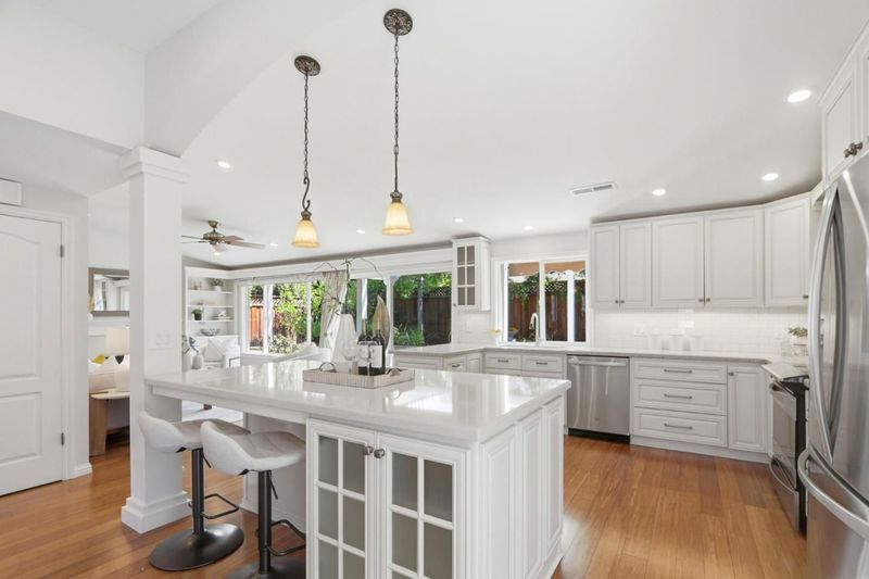 Nestled in the highly sought-after Almaden Valley, this beautifully maintained two-story home with ground floor bedroom offers an exceptional blend of comfort, style, and thoughtful upgrades, all set against a backdrop of scenic hill views. From its inviting curb appeal with lush landscaping and a charming, covered porch to the light-filled interior adorned with rich hardwood floors, vaulted ceilings, and elegant finishes, every detail has been carefully curated. The spacious layout flows effortlessly from the welcoming living and dining areas into a stunning chefs kitchen featuring quartz countertops, a generous island perfect for gathering, and sleek stainless-steel appliances, all opening to a warm and inviting family room centered around a stylish fireplace. The ground-level master bedroom suite provides a private retreat with direct backyard access, while the additional bedrooms offer ample space and versatility. Outside, the serene backyard oasis is designed for both relaxation and entertaining, complete with a pergola-covered patio, mature landscaping, and tranquil privacy. With modern amenities, abundant storage, and a prime location near top-rated schools, parks, and conveniences.